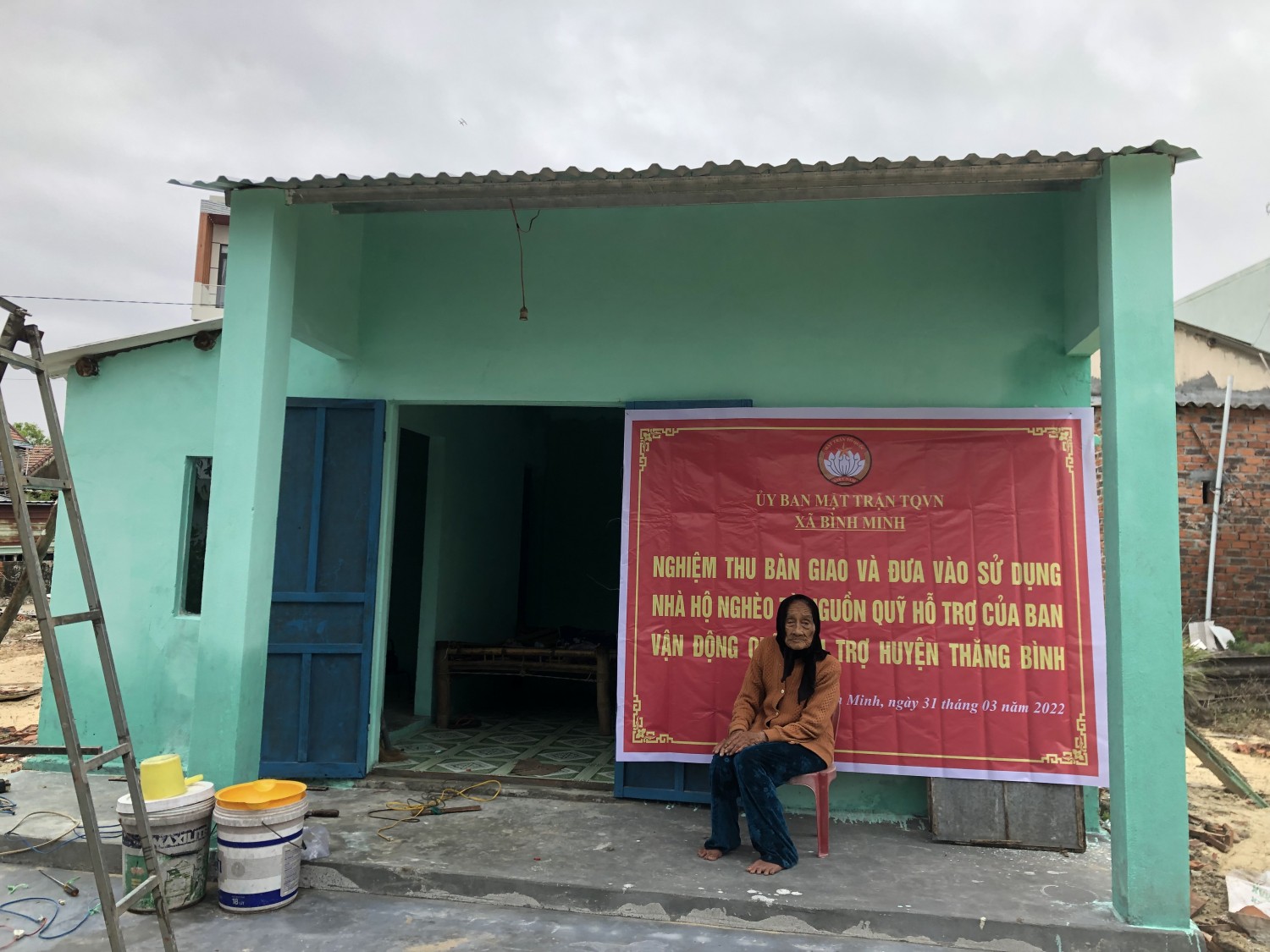 Hôm nay, ngày 6 tháng 4 năm 2022, được sự thống nhất của Ban Thường trực Ủy ban mặt trận huyện Thăng Bình, BTT Ủy ban MTTQ Việt Nam xã Bình Minh tổ chức nghiệm thu và bàn giao Nhà Đại đoàn kết cho hộ nghèo năm 2022 cho hộ Bà Phạm Thị Chí - hộ già đơn thân tại Thôn Bình Tịnh, xã Bình Minh.