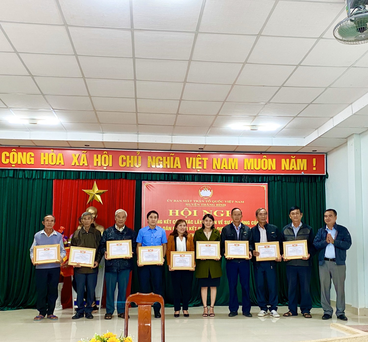 Cũng tại Hội nghị, Ban Thường trực Ủy ban MTTQ Việt Nam huyện đã khen thưởng 05 tập thể và 09 cá nhân có thành tích tốt trong công tác lấy kiến hài lòng của người dân về kết quả xây dựng nông thôn mới huyện Thăng Bình năm 2020.